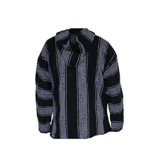 Hoodie Black White - Original pullover with capuchon, V neck and pocket on front. Various colors. Lightweight but warm. Handmade of polyester in Guatemala. Unisex. One size S-M-L.