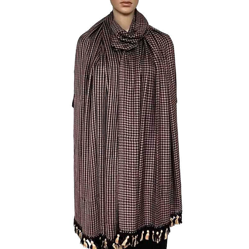 This extra large Shawl Deep Purple is a truly unique and versatile piece that will elevate any outfit. With its reversible design, soft drape and delicate pompons, it can be worn at home, work, or for a special evening out.