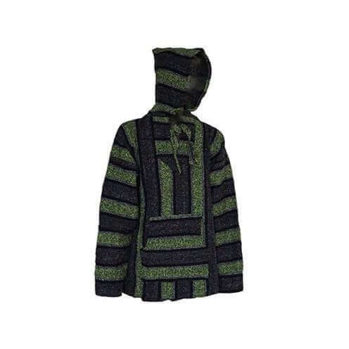 This Hoodie Green Mélange, a Original pullover Sweater with V neck and pocket on front is lightweight but warm. It is handmade in Guatemala from polyester and is vailable in a variety of colors. Unisex. One size fits all.