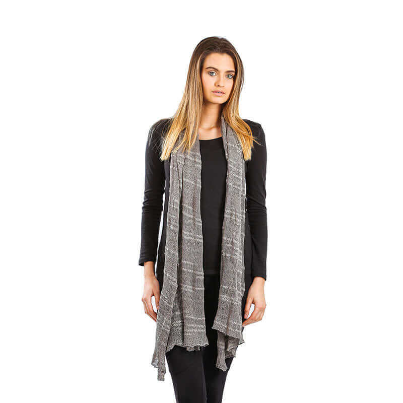 Deze stijlvolle Shawl Pebbles Grey is ontworpen en handgeweven in Canada met een mix van Pima-katoen en bamboe garen uit Peru.