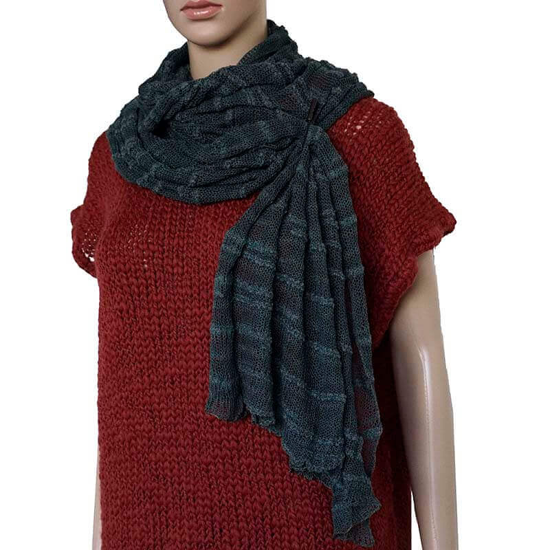 De sjaal is ontworpen en handgeweven in Canada van een garenmix van hoogwaardig pima-katoen en bamboe uit Peru. Het resultaat is een modieus, lichtgewicht en dun omslagdoek die perfect is voor elke gelegenheid.