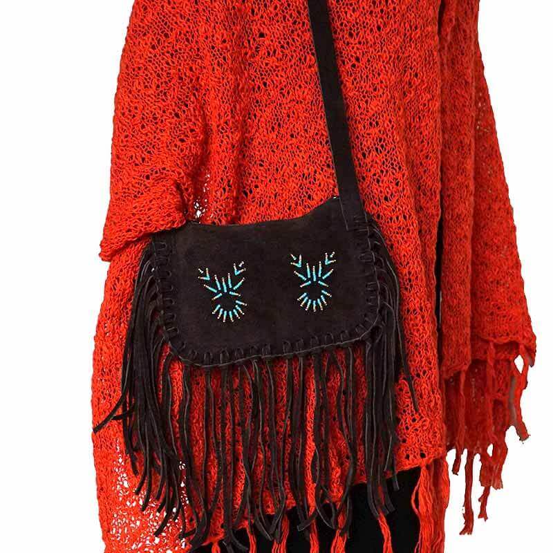 Schoudertas Bruin - Suede - Authentieke Indianen Tas - Handgemaakt